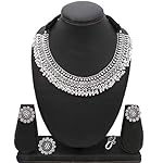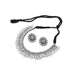 Up to date, yet Ethnic Looks- German Silver Oxidized Necklace set for women Representing a classic fusion of exquisite craftsmanship and feminine elegance, Designer crafted choker Necklace set with earrings ring nose pin which is stylish recent Fringe Celebrity Style.Our Product is perfect for valentines Anniversary Birthday gift for Women,girlfriend,Wife.