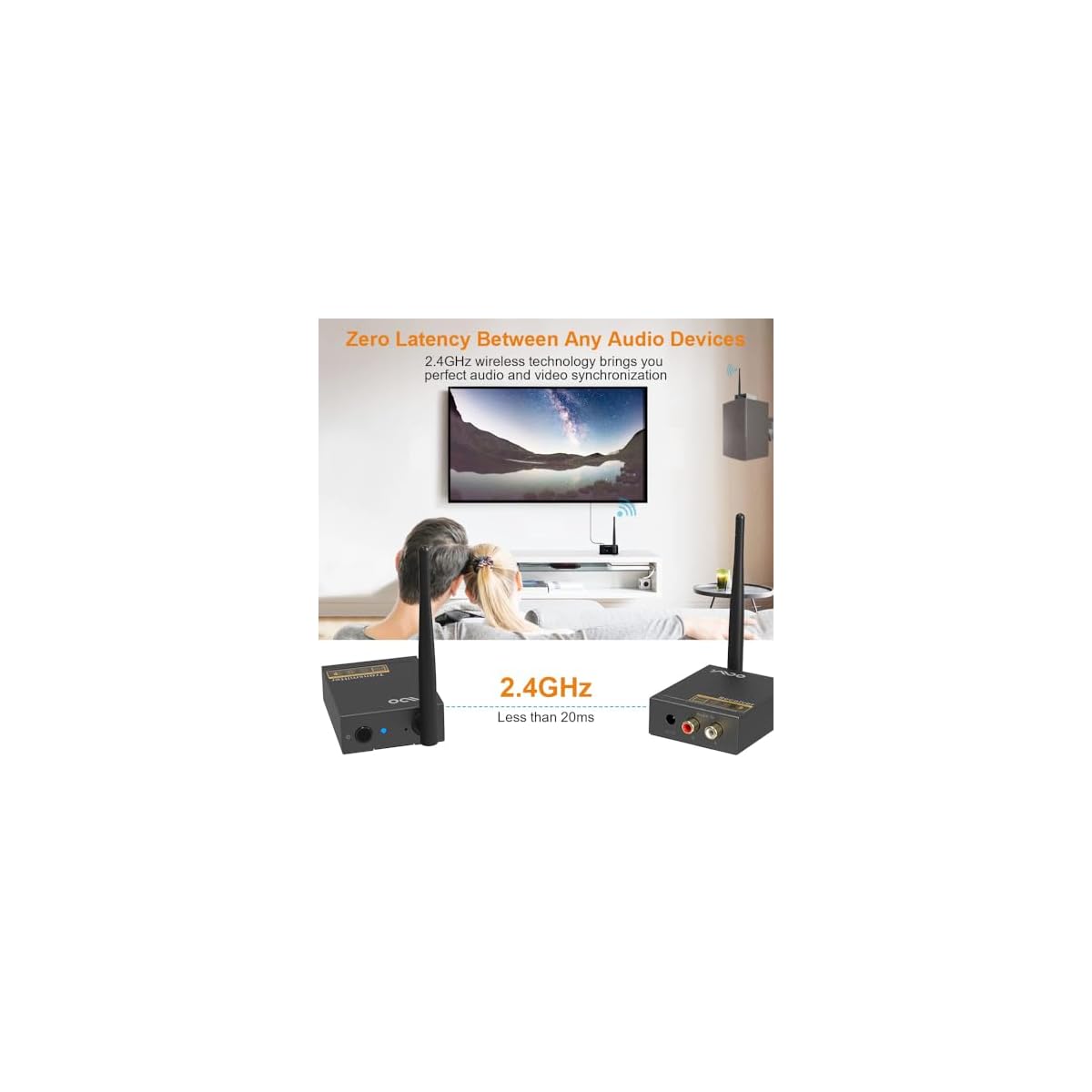YMOO 2.4Ghz Wireless Audio Transmitter Receiver,192kHz/24bit HiFi Audio,20ms Ultra Low Latency,320ft Long Range RCA Jack Adapter for Active Subwoofer/Speaker to TV/PC/CD Playerโฆ