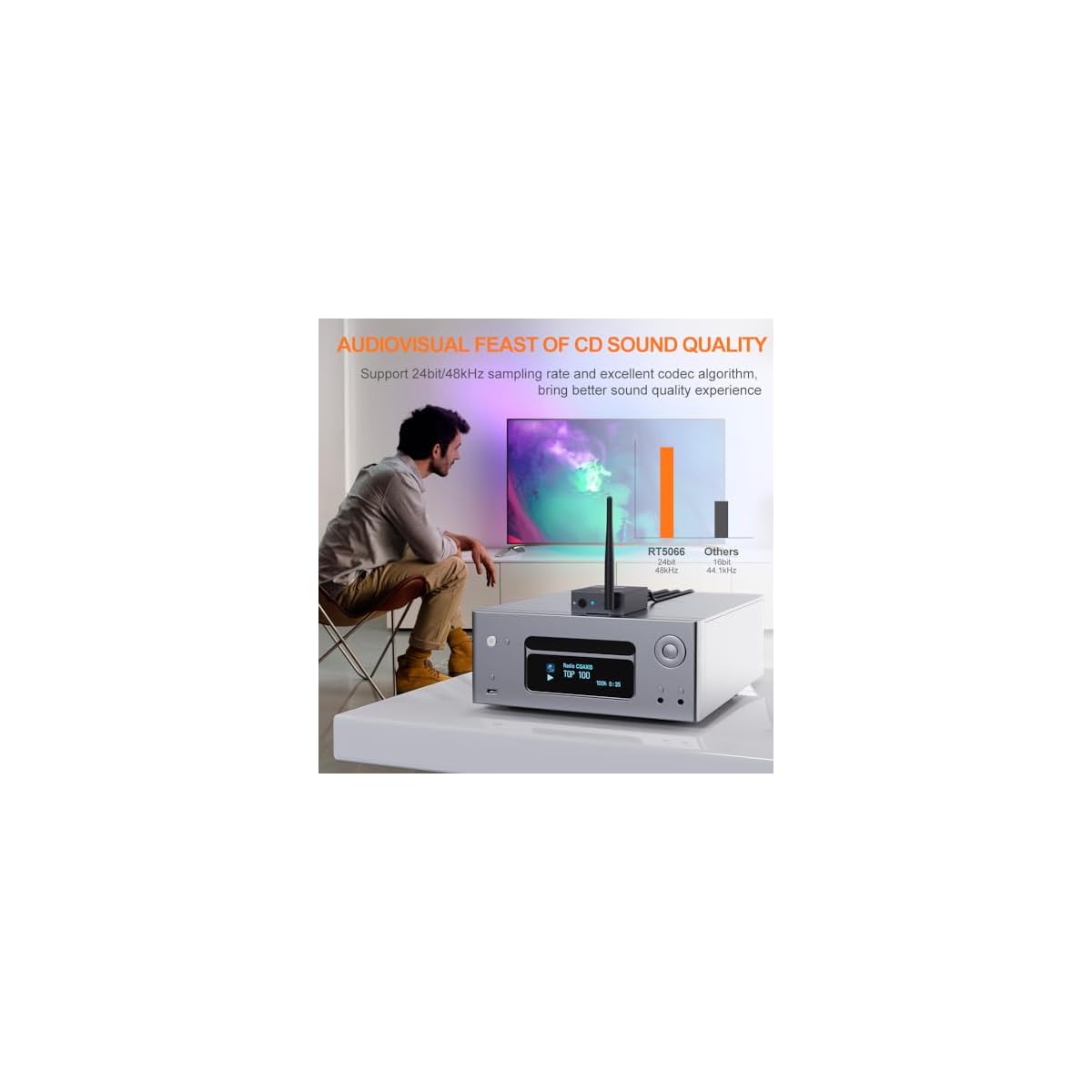 ๐ข ๐๐ญ๐๐ซ๐๐จใ Supported by 2.4GHz transmission technology, YMOO wireless audio transmitter and receiver delay is less than 20ms. Streaming high-quality audio up to 24bit / 192kHz, eaqual to CD quality, even better. Transimission sound is clear, stable, noise-free, and audio synchronization. Strong anti-interference technolgy no matter at home or office, you can enjoy excellent audio quality.Apple Shopping Event