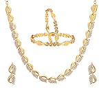 ZENEME Non-precious Metal Gold Plated and American Diamond Necklace Set & Bangles for Women & Girls