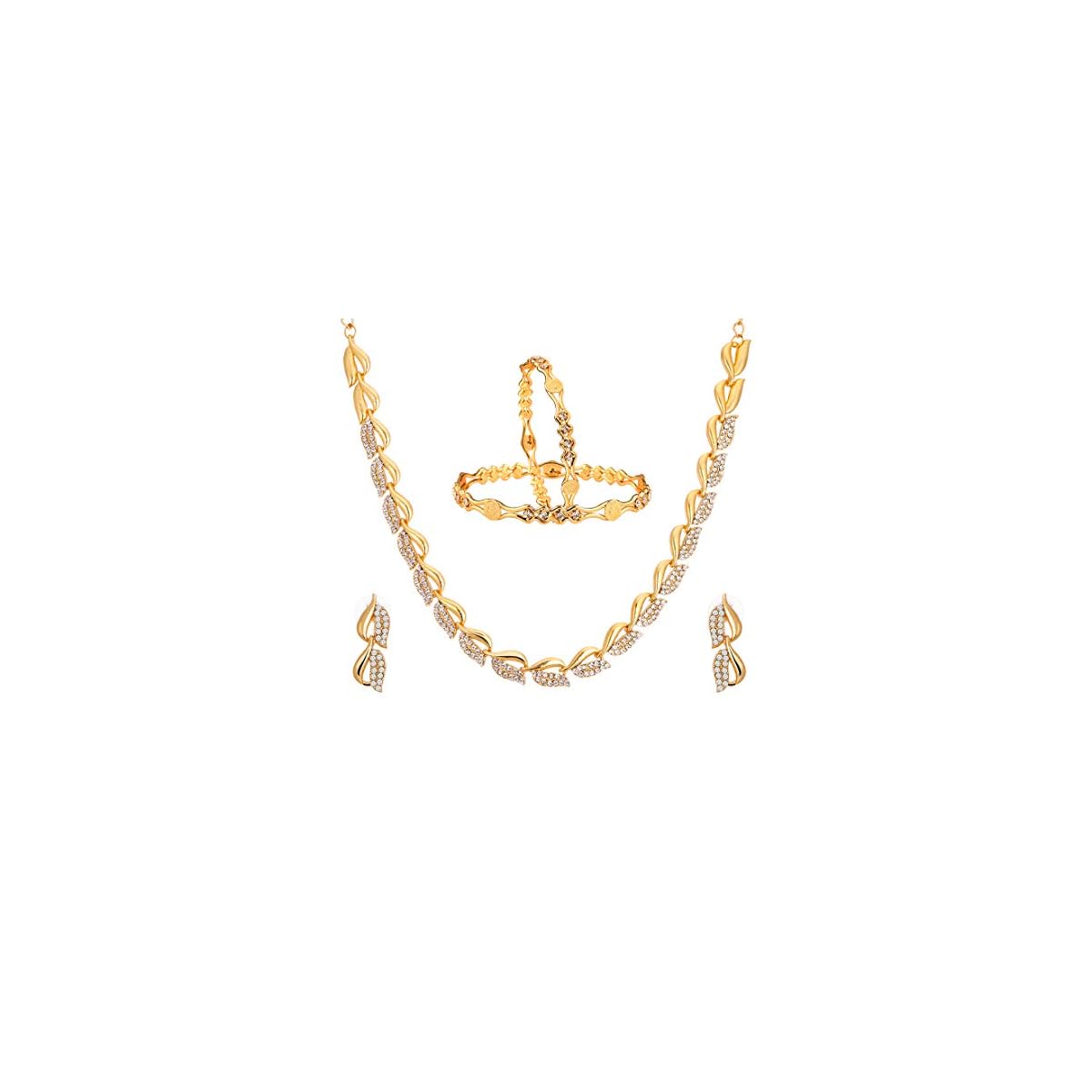 ZENEME Non-precious Metal Gold Plated and American Diamond Necklace Set & Bangles for Women & Girls