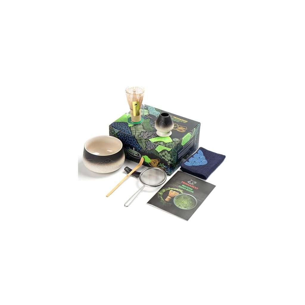 TEANAGOO Japanese Matcha Set (7pcs) Matcha Whisk Mtacha Kit Matcha Bowl with Pouring Spout Bamboo Matcha Whisk (chasen) Scoop (chashaku) Whisk Holder. N24, Gradient White, Matcha Green Tea Powder